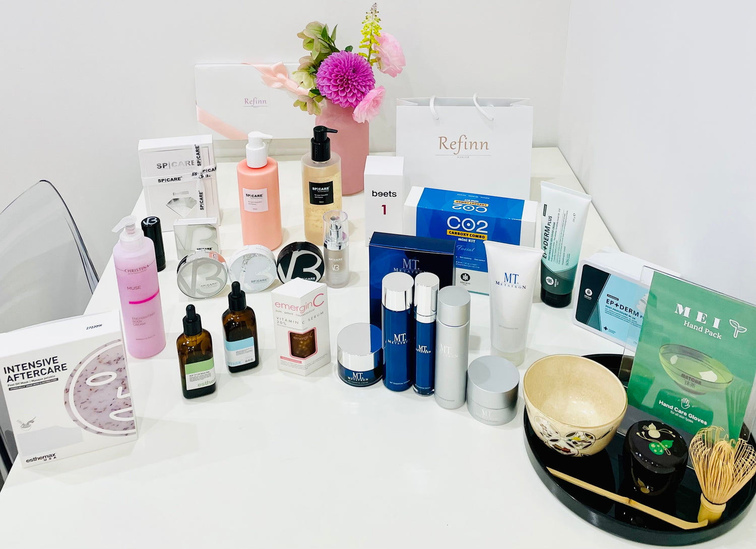 世界の 5 スターホテルや一流スパでも導入されている emerginC(NY), Esthemax(California), CHRISTINA(Israel), MTメタトロン(Japan), CARBOXY/EPIDERM(Korea),SPICARE(JAPAN), beets(Japan), 自社製品MATCHA Hand Pack MEI等をお取扱いしております。